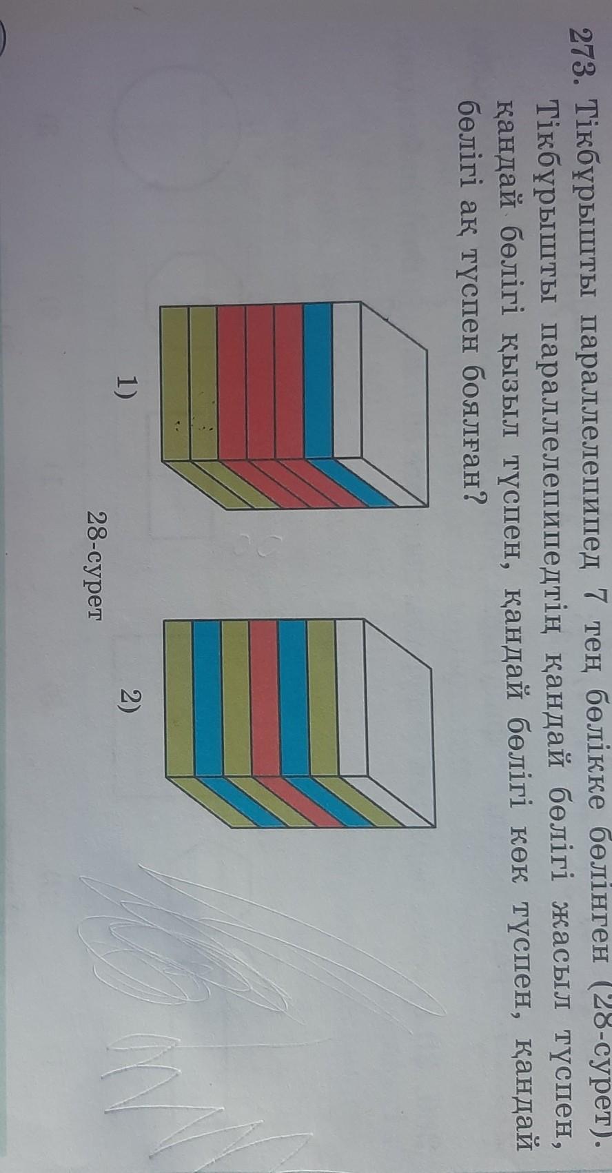 1)3бөлігі қызылмен боялған;1бөлігі көк пен 1бөлігі ақ пен;2бөлігі жасылмен болған