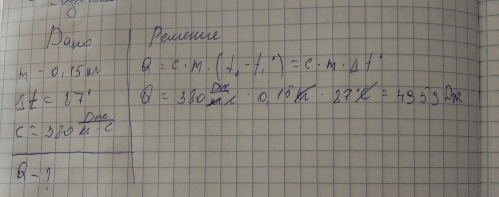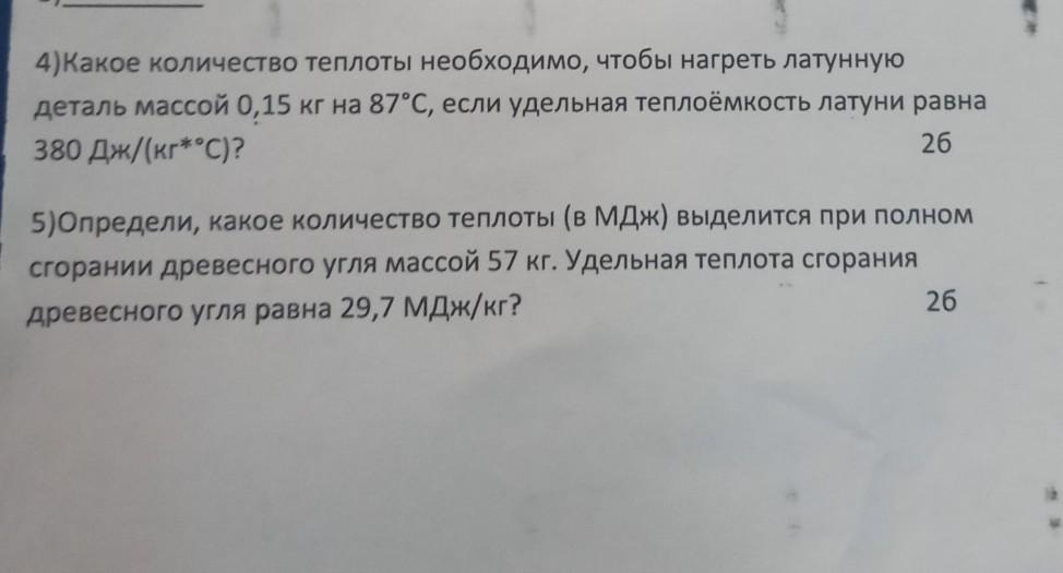 Какое количество теплоты необходимо чтобы нагреть латунную деталь массой 0.15 кг на 87 градусов можно 4 и 5 пожалуйста