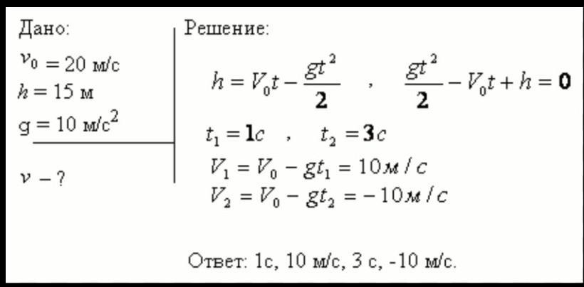 С башни высотой 20м брошен камень со скоростью 15 м/с. Найти скорость камня при падении его на землю и сравните её со скоростью падения с той же высоты, но без начальной скорости