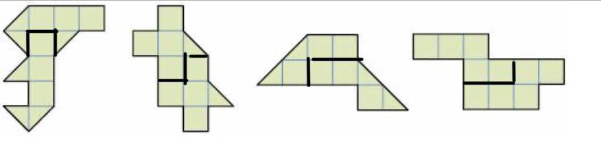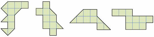 Перед вами четыре фигуры. Разрежьте каждую из них на две одинаковые части (равные и по форме, и по площади). Резать фигуру можно не обязательно по линиям сетки. а) б) в) г)