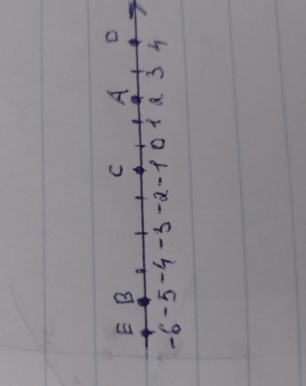 Накресли координатну пряму По знаєш на координатній прямій Точки A(2) B(-5) C(-1) D(4) E(-6)