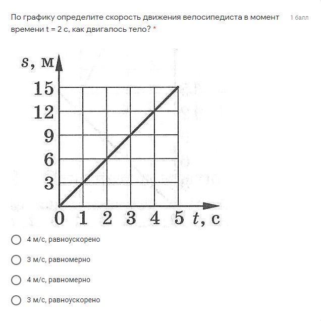 По графику определите скорость движения велосипедиста в момент времени t = 2 с, как двигалось тело?