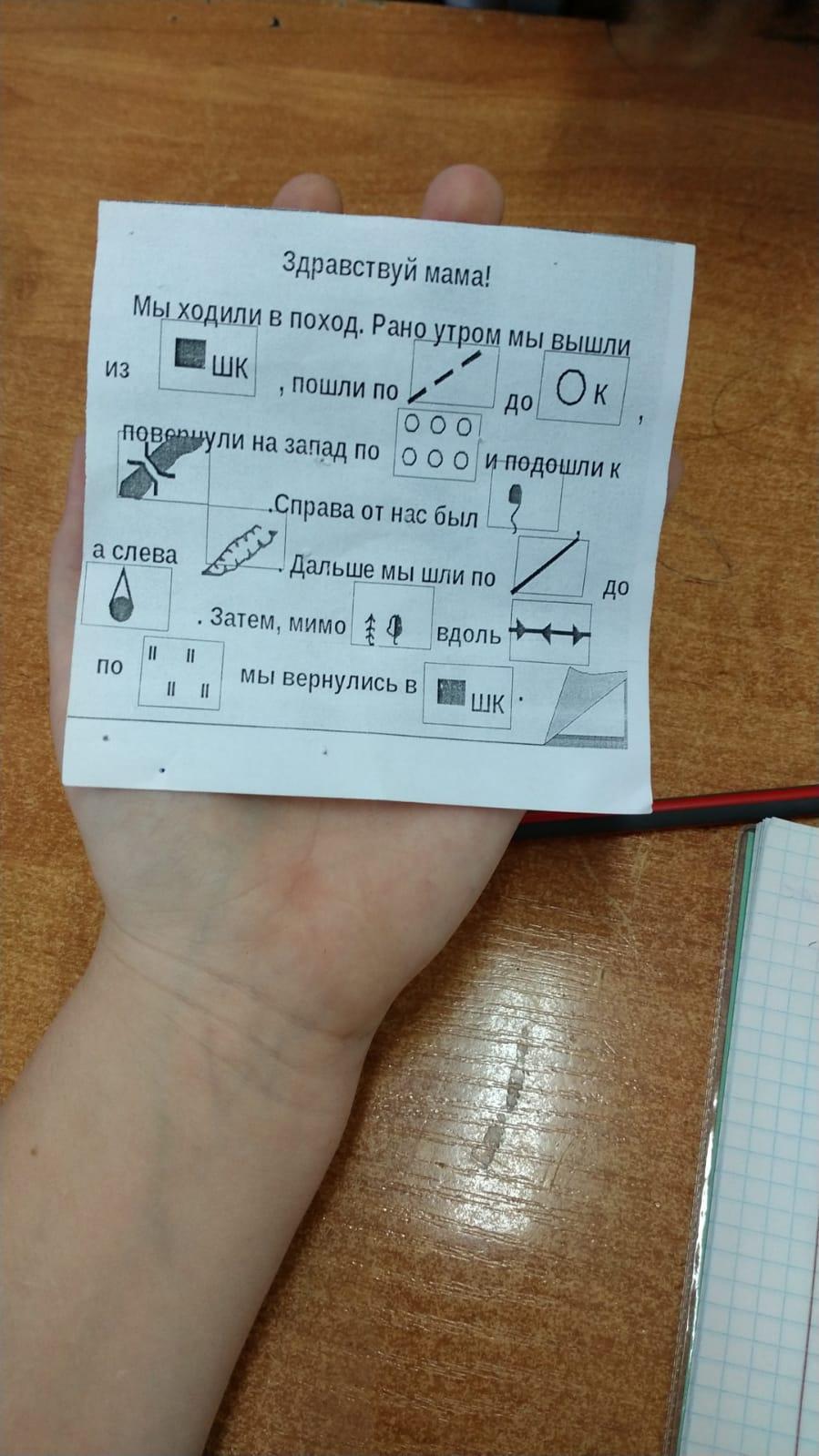 Мы ходили в поход. Рано утром мы вышли из школы, пошли по тропе до колодца , повернули на запад по фруктовому саду и пошли к плотине. справа от нас был родник, а слева овраг. дальше мы шли по грунтовой дороге до башни. затем, мимо смешанного леса вдоль * по лугу мы вернулись в школу.