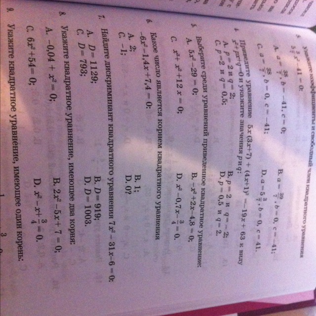 Вариант ответ D ( х² - 0.7x - 3/4 = 0 )