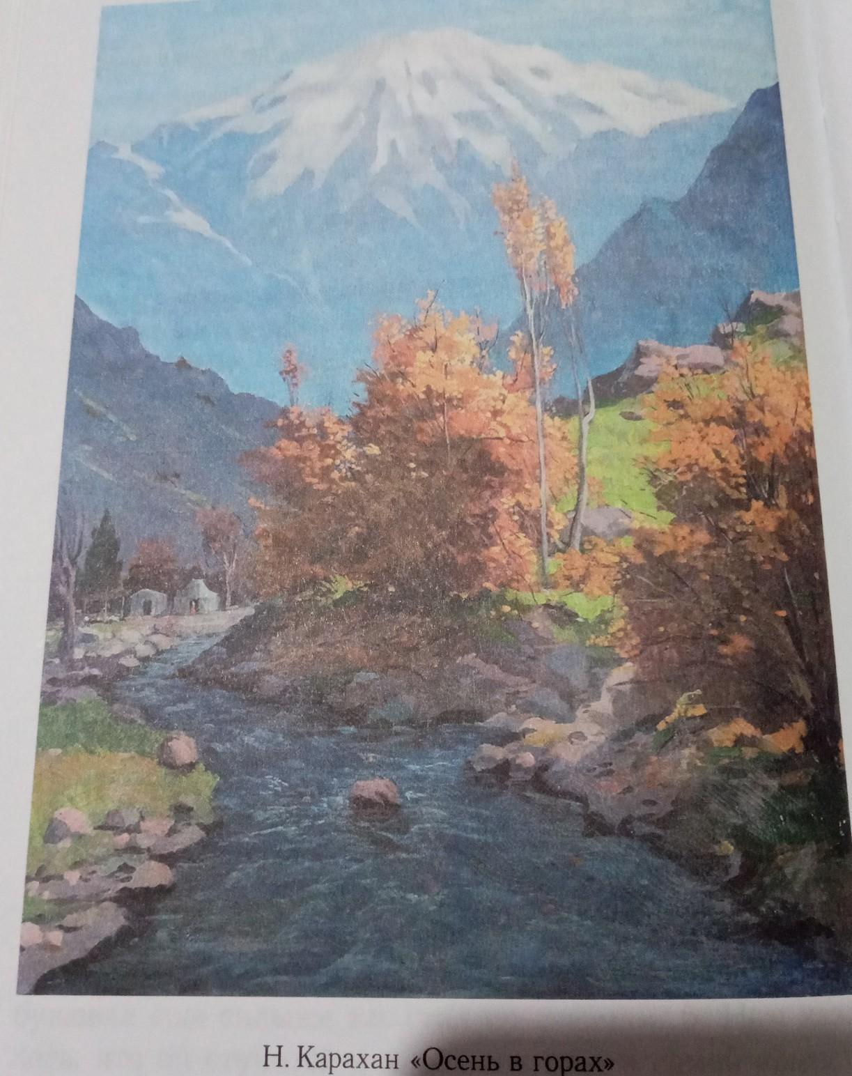 Рассмотрите картину узбекского художника Николая Карахана "Осень в горах". срочно если что 5 класс