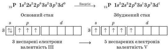 Фосфор (далі P) знаходиться у V группі, це означає що у нього 5 електронів на зовнішньому енергетичному рівні (3s1 3p3) і в такому стані він може віддати/забрати 3 електрони (з неповного 3p-підрівня), але у збудженому стані його зовнішній енергетичний рівень буде 3s1 3p3 3d1 (див. фото) і тепер він може максимально віддати/забрати 5 електронів.