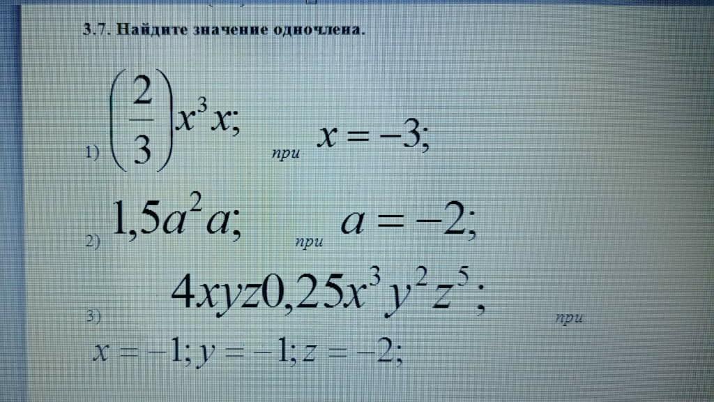 3) 4xyz0,25x³y²z⁵=4*0,25x⁴y³z⁶=x⁴y³z⁶ при х=-1; у=-1; z=-2