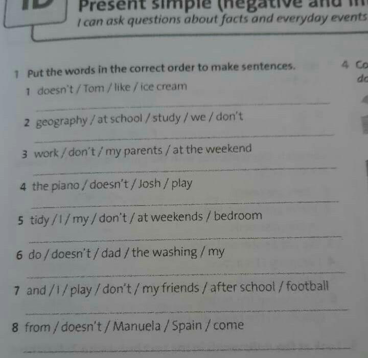 1. Tom doesn't like ice cream.