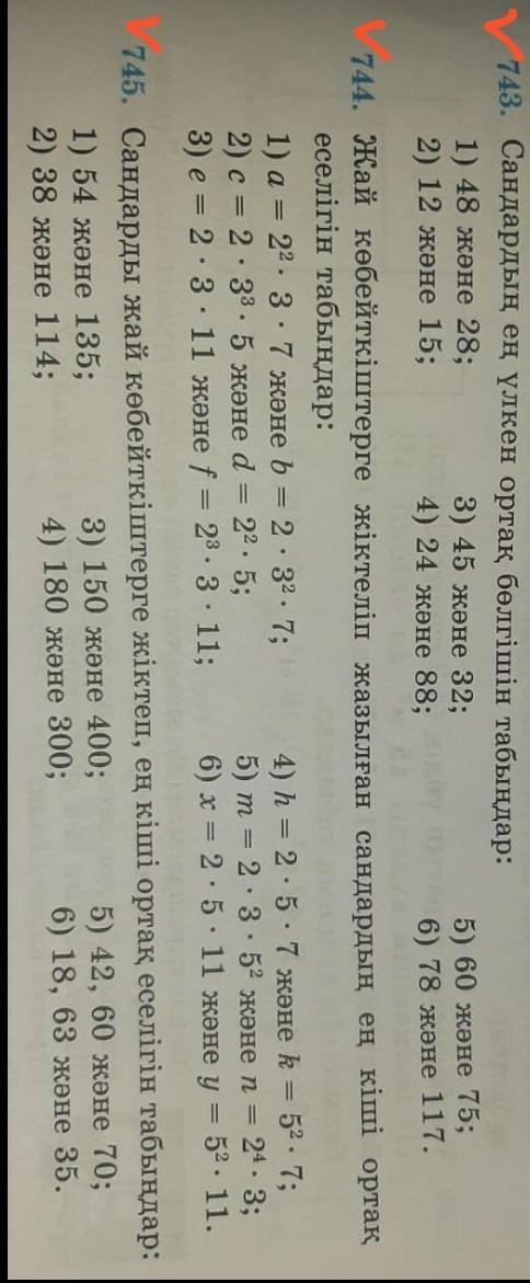 ЕҮОБ(48,28)=2²*3=4*3=12 и т. ЕКОЕ выберет нужно выбрать самый большой на а ЕҮОБ нужно выбрать самый маленький и так далее надеюсь поняли я показал лишь одной