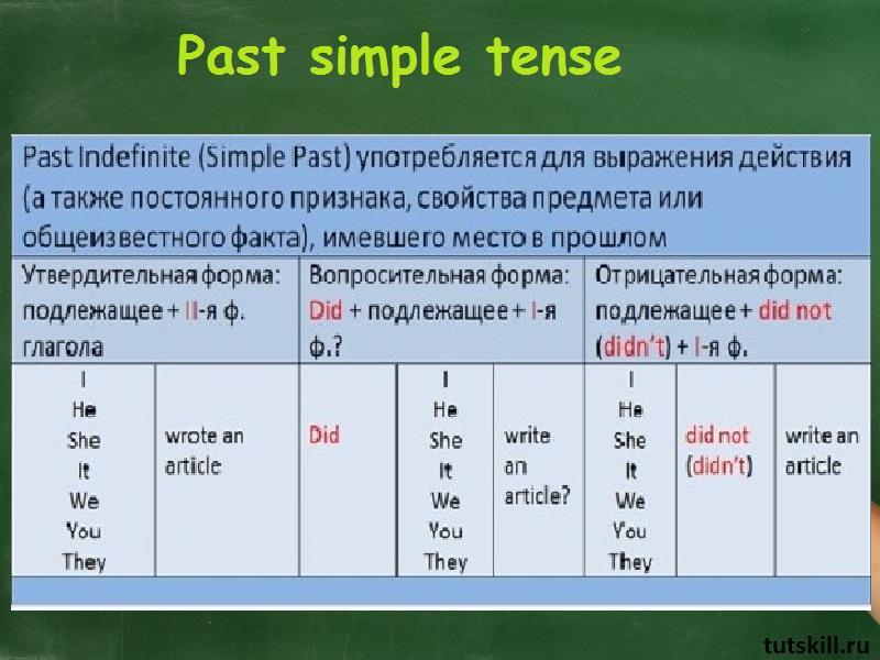 Was and Were (Was добавляется в 1 и 3 лицам, а Were добавляется ко 2 лицу):