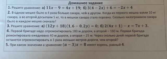 2) Пусть во втором мешке Х кг сахара,тогда в первом 4х кг. Когда из первого взяли 10 кг,то в нем стало 4х-10.А во втором ,после того как в него добавили 5кг,стало Х+5 кг. Получаем уравнение 4х-10=Х+5, во втором 5•4=20 в первом.
