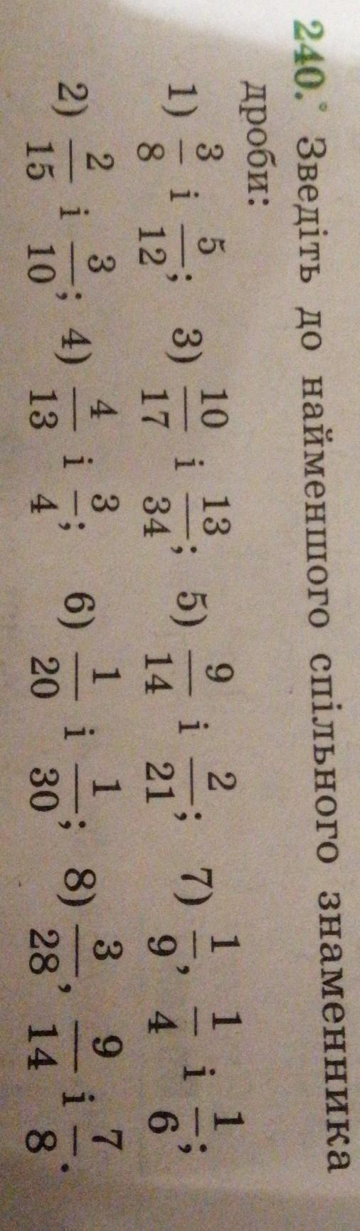 первое 3\8 второе 2\15 трете 10\17 четвёртое 3\4 пятое 2\21 шестое 1\20 седьмое 1\4 восьмое 3\28 ставь спасибо если помог
