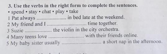 use the verbs in the right forms to complete the sentence spend stay chat play take