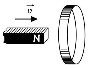 Определите направление индукционного тока в той половине кольца, которая на рисунке расположена ближе к вам.