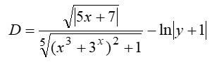 print((abs(5*x+7))**0.5/((x**3+3**x)**2+1)**0.2-math.log(abs(y+1)))