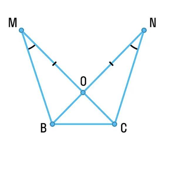 следовательно треугольник BOM = треугольнику CON по 2 признаку (по стороне и двум прилежащим углам)