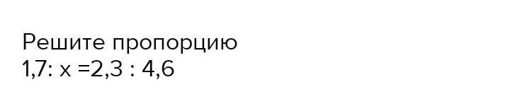 что бы найти х нужно перемножить по диагонали и разделить на оставшееся, то есть ((1.7×4.6):2.3=3.4)