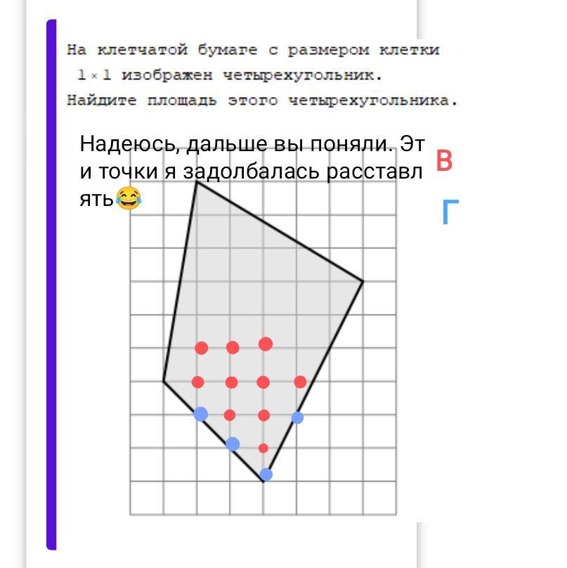 Вычислим площадь по формуле Пика: