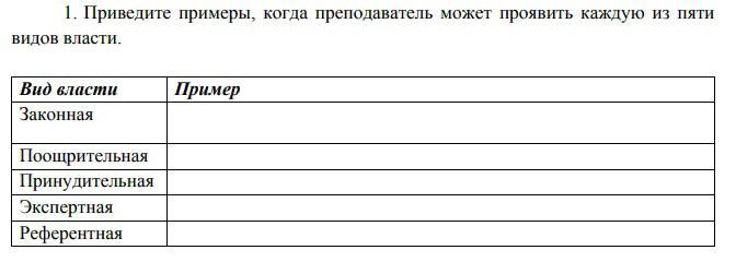 Экспертная власть - это способность преподавателя влиять на учеников в силу своей подготовленности, уровня образования, опыта, таланта, умений и навыков. Как руководитель учебного процесса, он настаивает на выполнении порученной работы. Одна из целей: выполнение учебного плана.