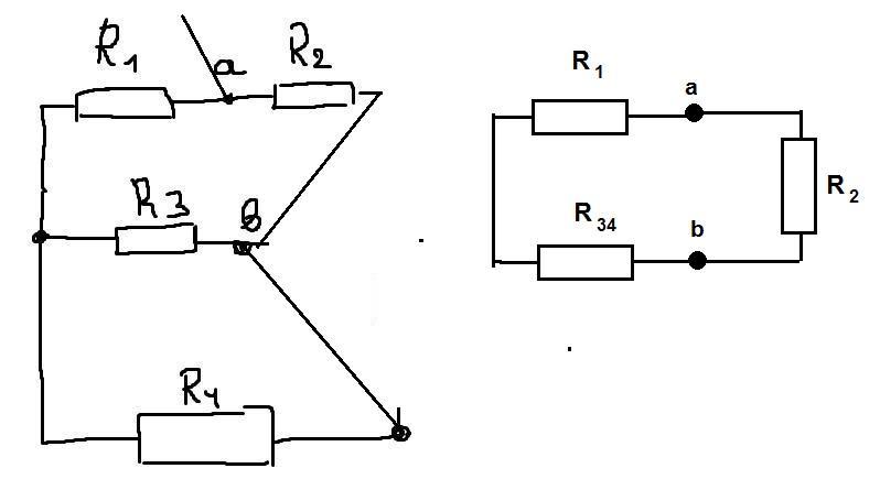 R₁₃₄ = R₁ + R₃₄ = R₁ + R₃·R₄/(R₃ + R₄)