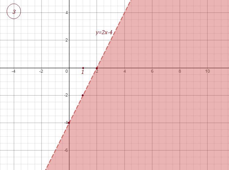 Это часть плоскости (полуплоскость) , лежащая ниже прямой у=2х-4 . Сама прямая (граница области) в область не входит .