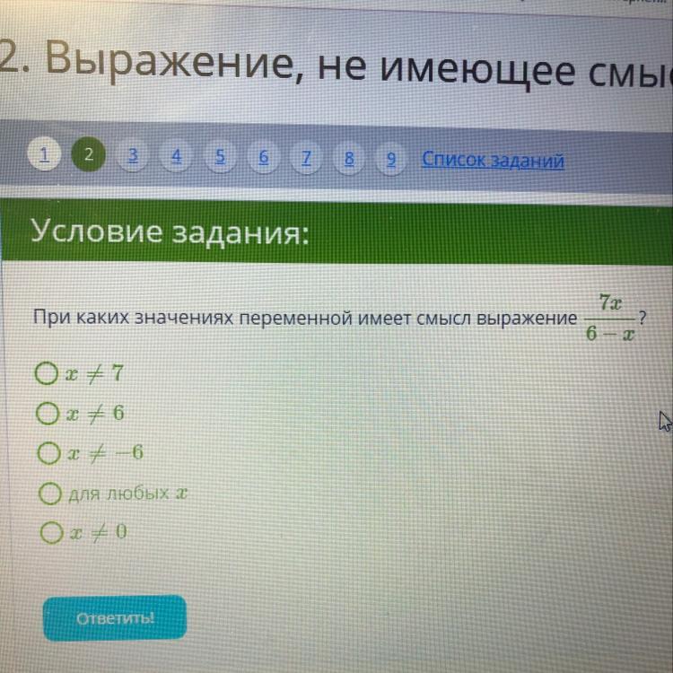 Дробь не имеет смысла, если в знаменателе стоит 0, а 6-6=0