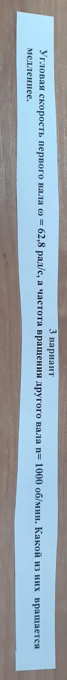 угловая скорость первого вала 62,8 рад/с, а частота вращения другого вала n=1000 об/мин. Какой из них вращается медленне