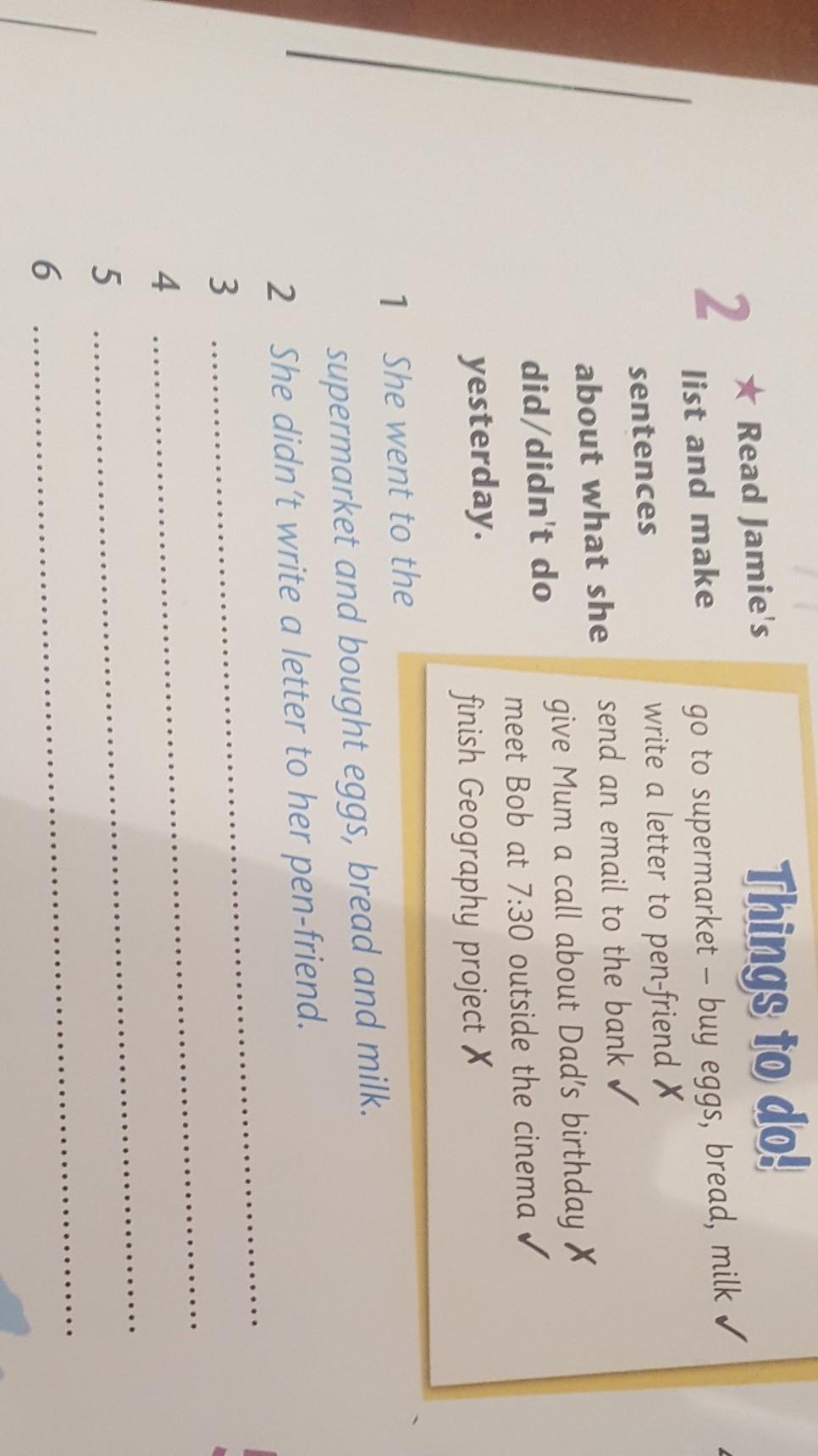Read Jamie's list and make sentences about what she did didn't do yesterday помогите пожалуйста