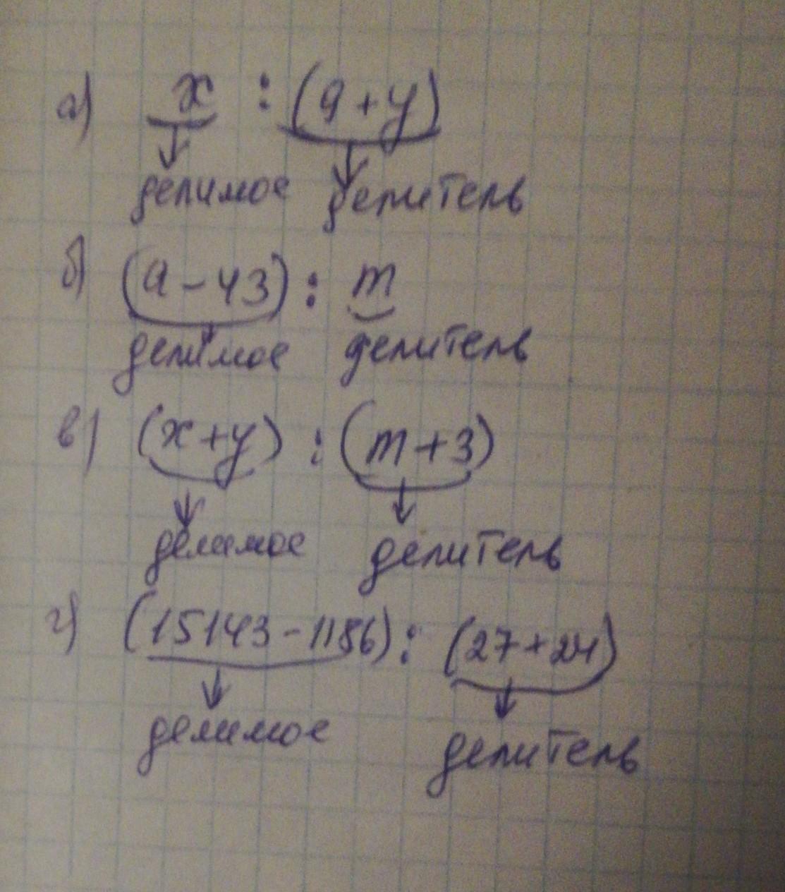 То, что до знака деления-это делимое. А то, что после знака деления-это делитель