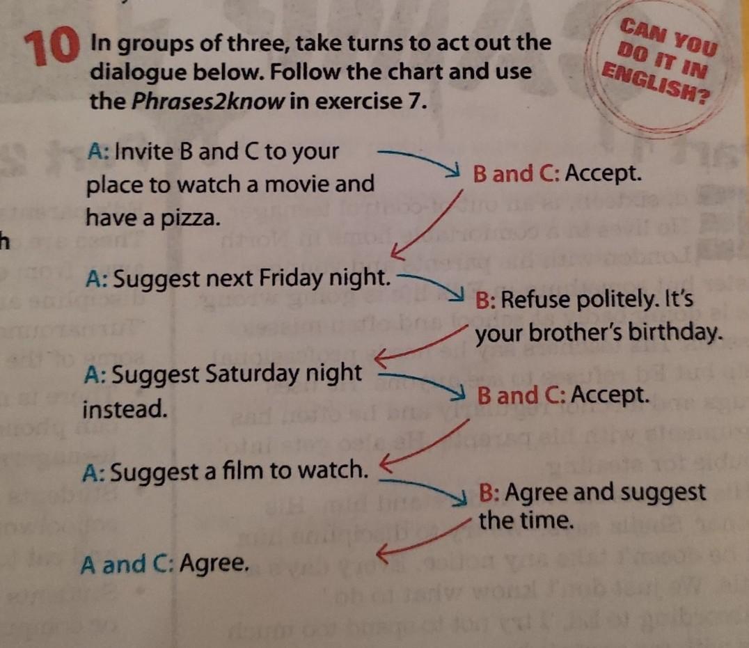 B: Oh, sorry, I can't come on Friday. It's my brother's birthday.
