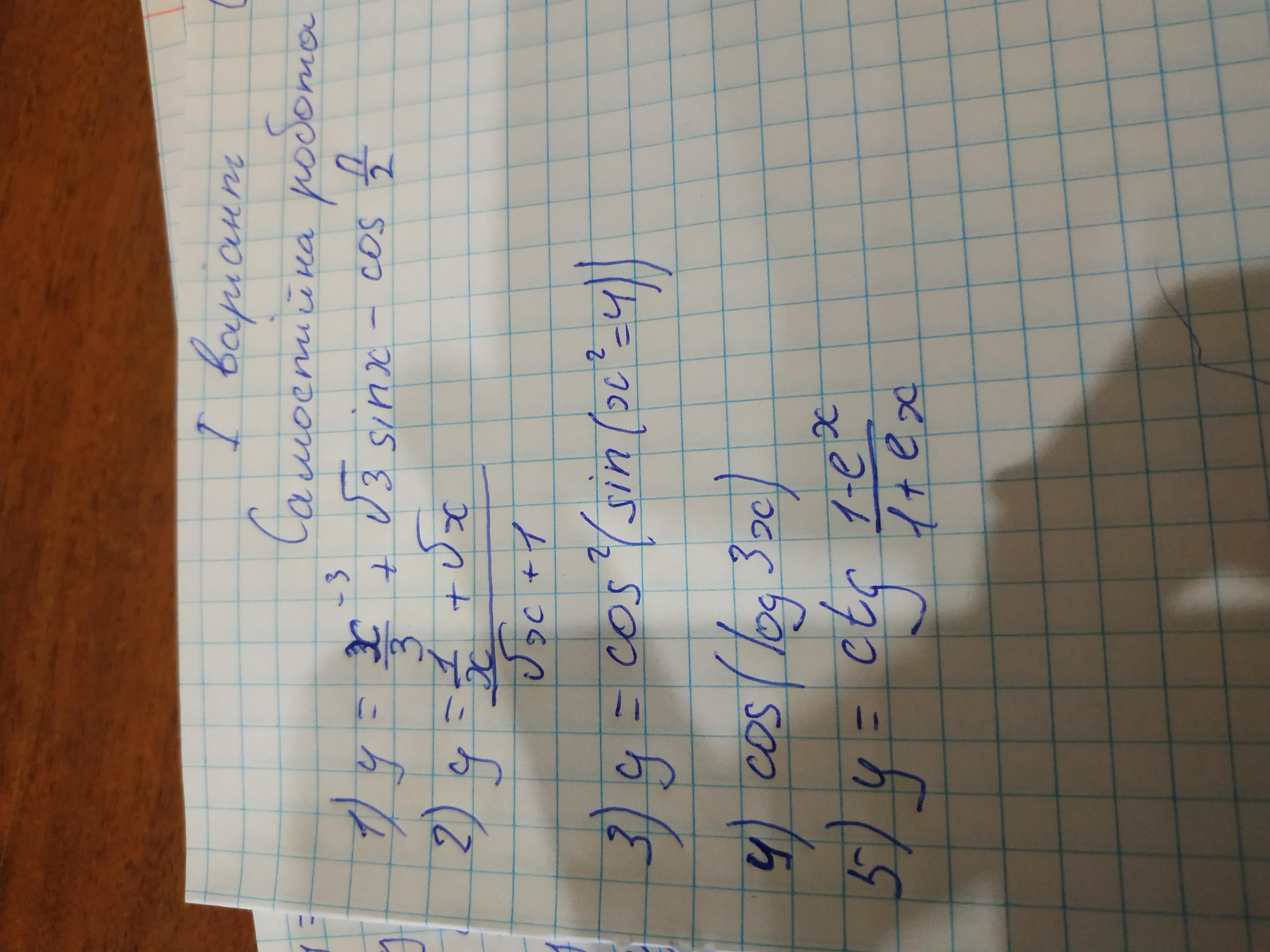 1) y' = ( 1/3 *x⁻³ + √3sinx - cosπ/2 )' = 1/3 *(- 3 )* x⁻⁴ + √3cosx - 0 =