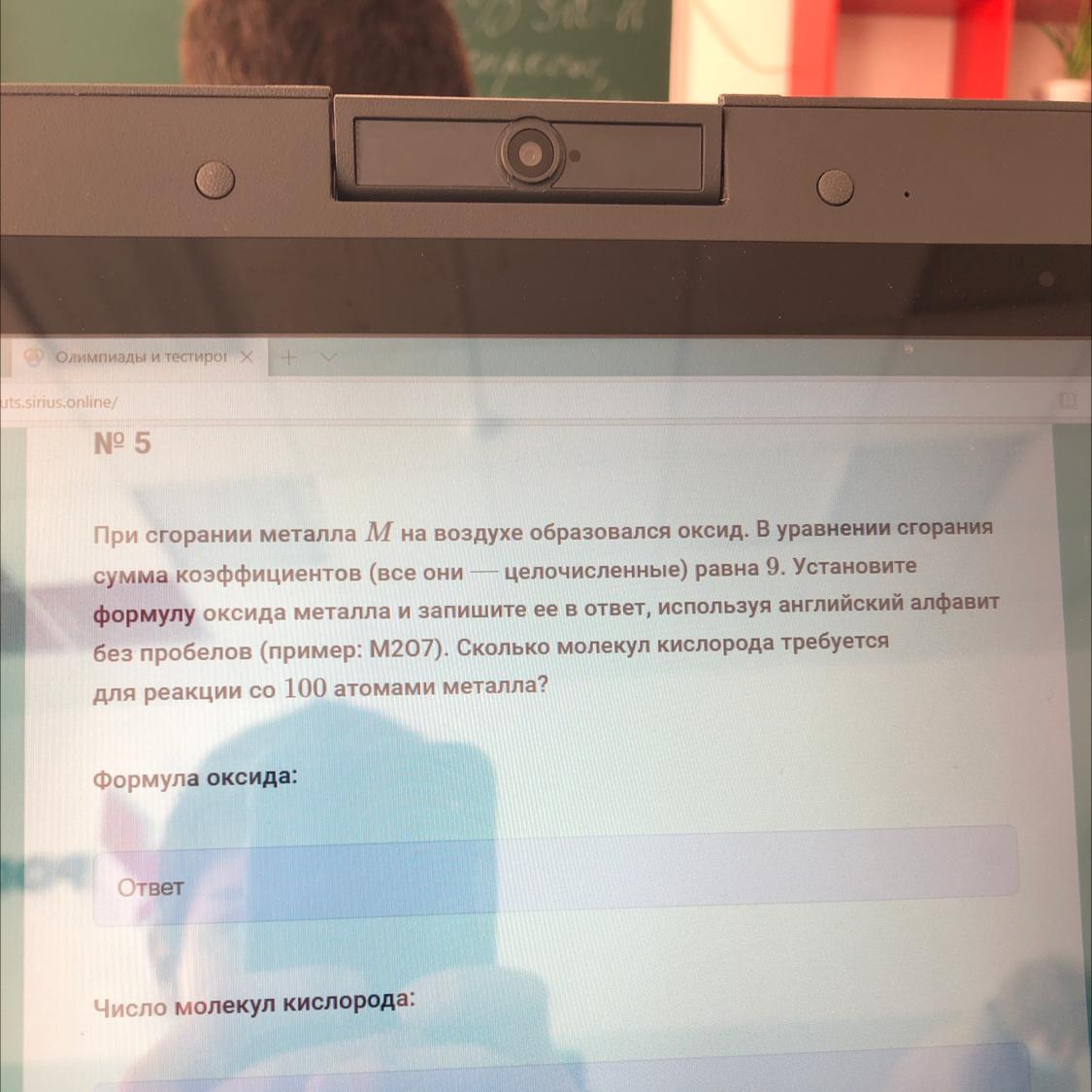 формулу оксида металла и запишите ее в ответ, используя английский алфавит