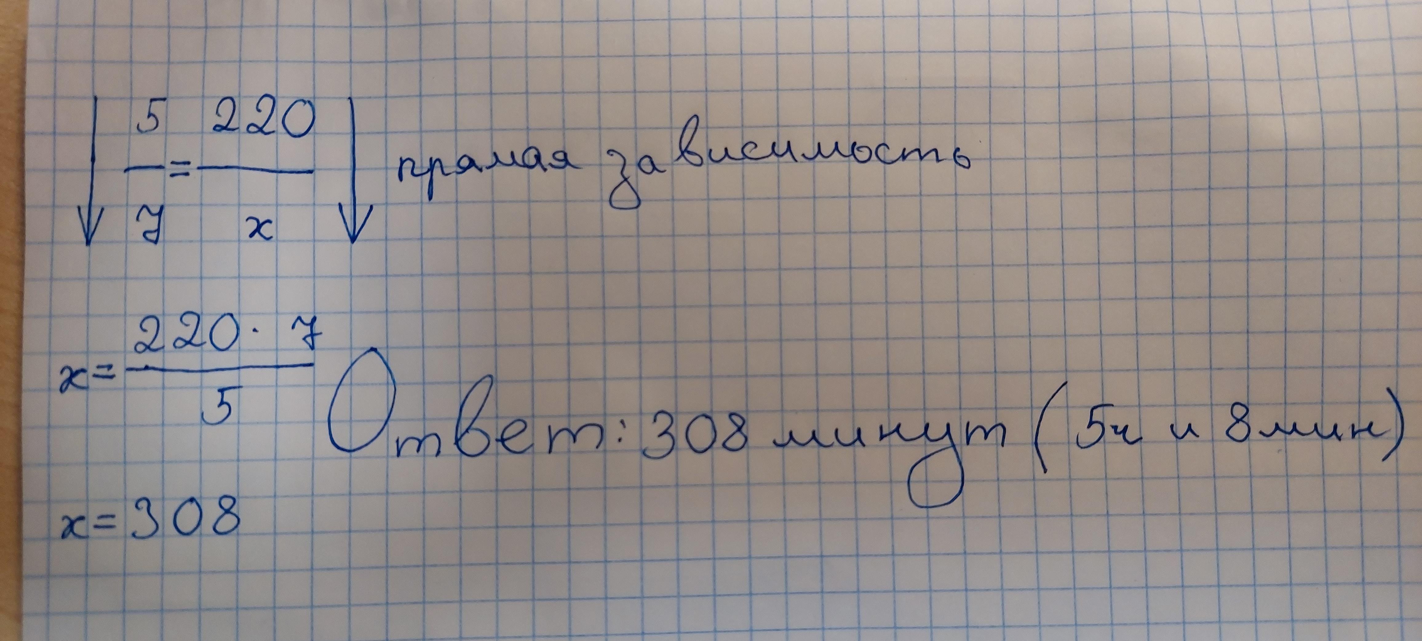 Определите вид зависимости внличин и решите задачу с помощью составления пропорции. Для строительства стадиона 5 бульдозеров расчистили площадку за 220 мин. За какое время 7 бульдозеров расчистят эту площадку. Пж
