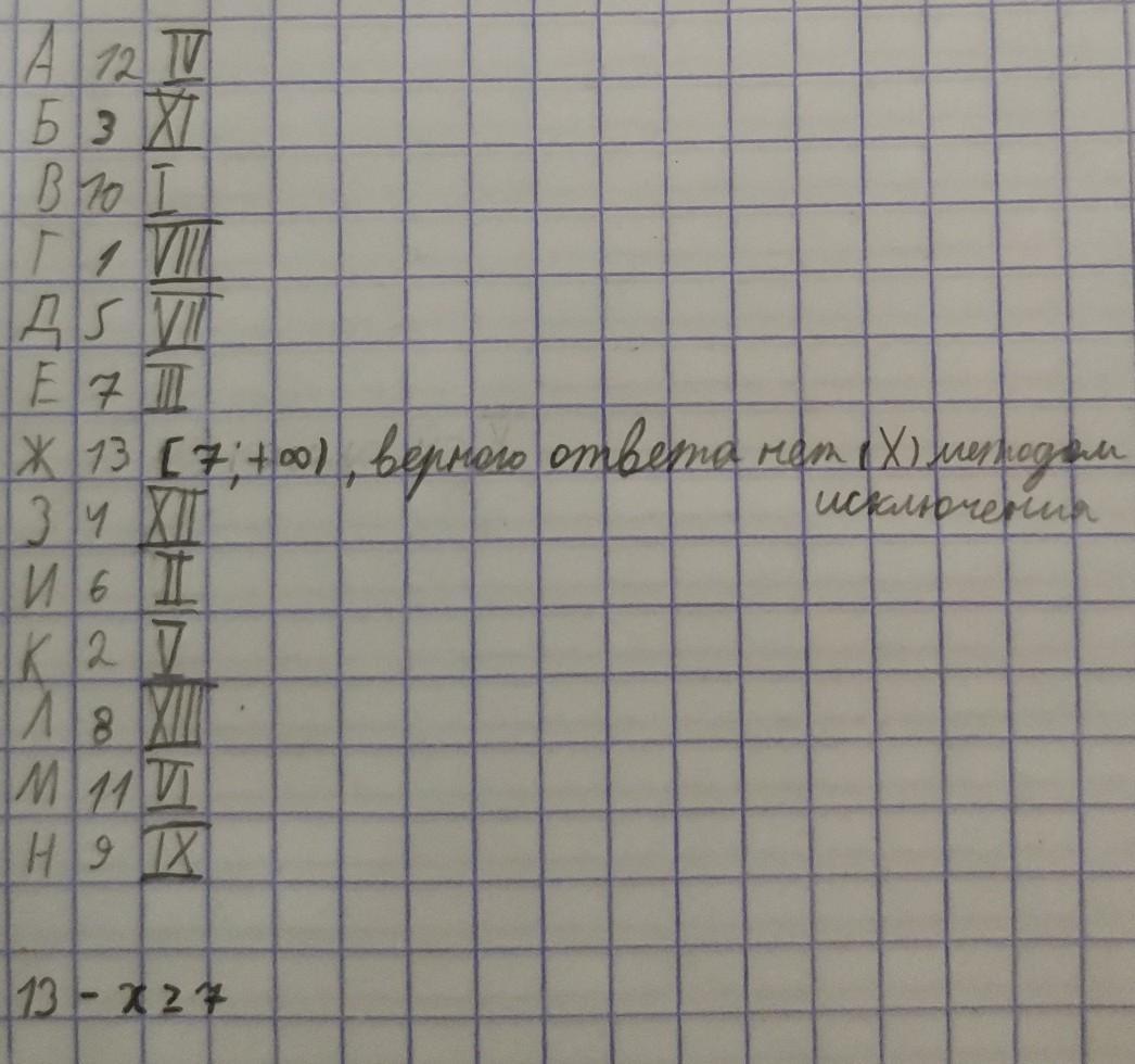 13 Ж, [7;+бесконечность), (X методом исключения)