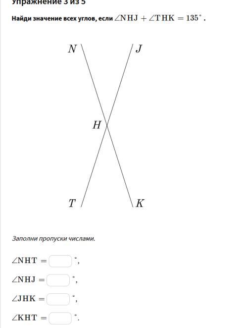 ∠NHJ и ∠THK - вертикальные, значит ∠NHJ =∠THK=135°:2=67,5°