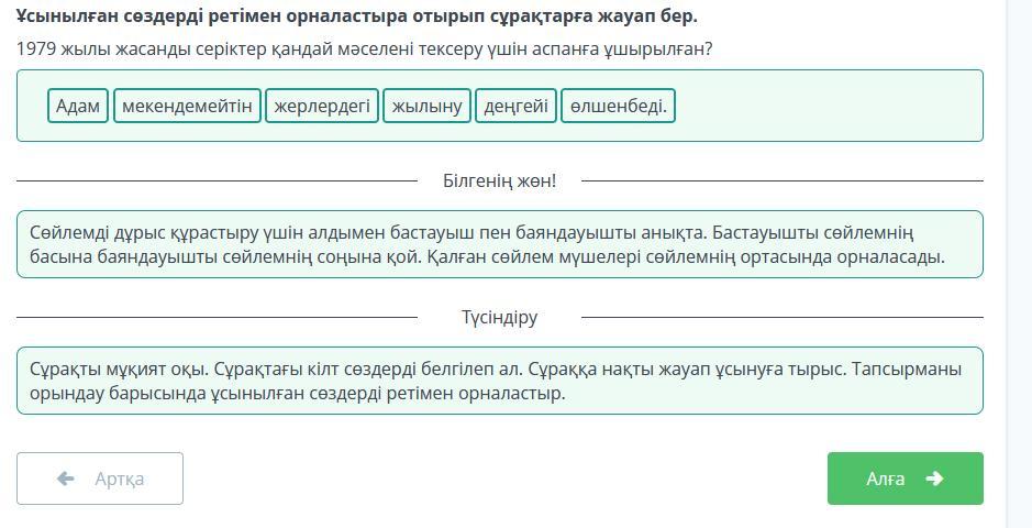 Ұсынылған сөздерді ретімен орналастыра отырып сұрақтарға жауап