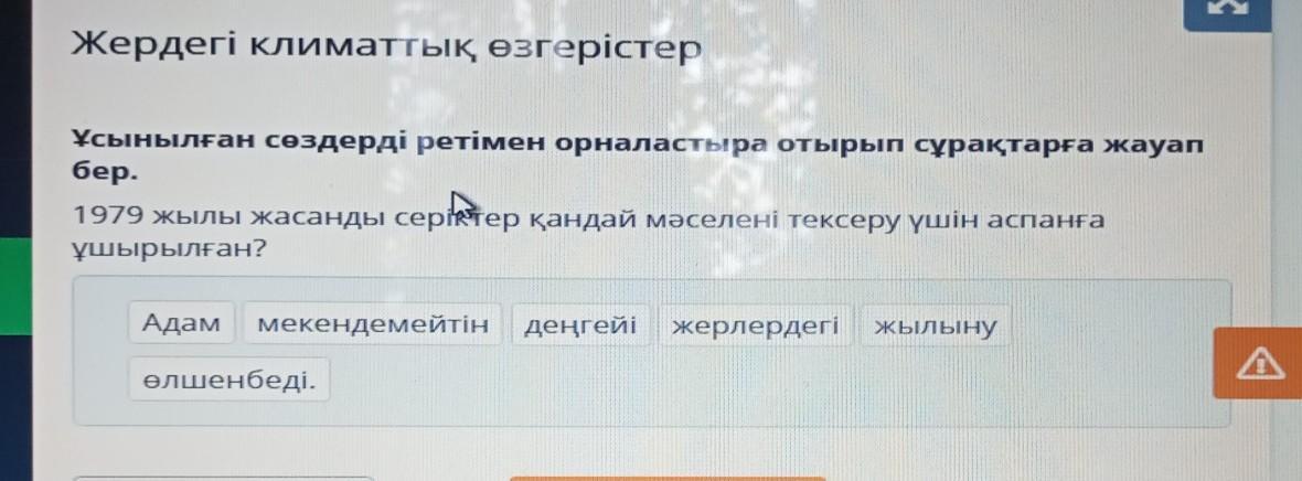 Ұсынылған сөздерді ретімен орналастыра отырып сұрақтарға жауап бер.