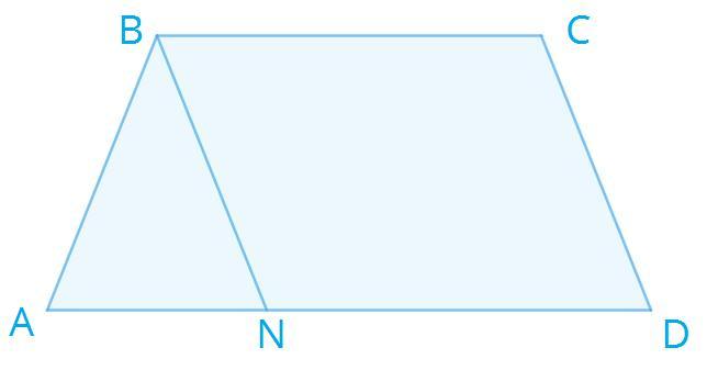 В равнобедренной трапеции ABCD через вершину B проведена прямая, которая параллельна стороне CD и пересекает сторону AD в точке N.