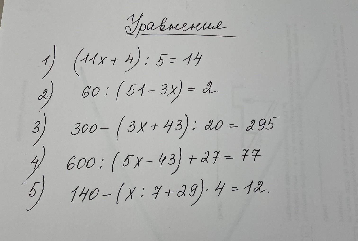 5) 140-(x ÷ 7 + 29)×4 = 12