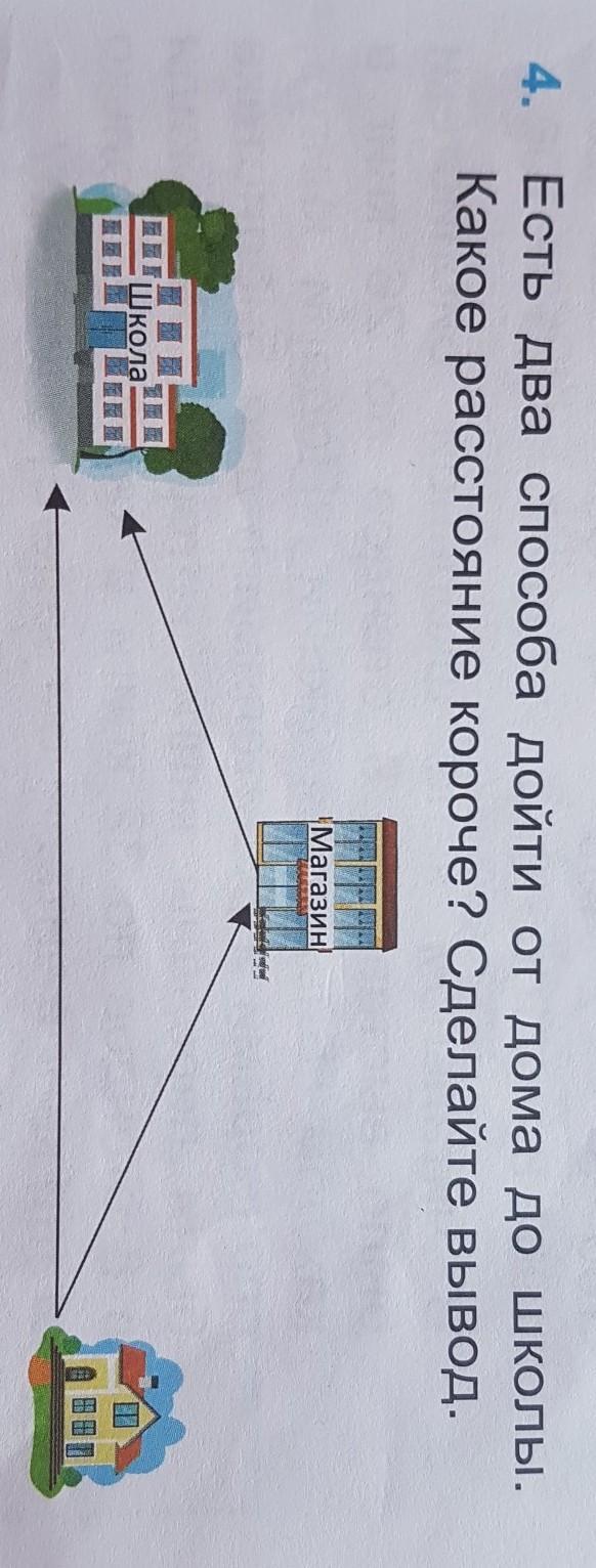 Ну..я думаю, что самый короткий путь от дома до школы тот, который ниже, потому что верхний путь состоит из двух стрелок, а если соединить их, то получится путь длиннее, чем тот, нижний