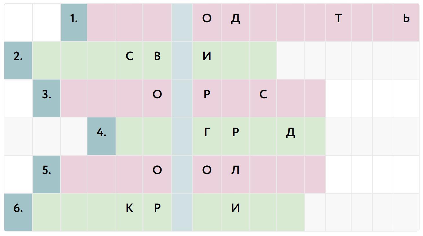 Подберите к данным словам и словосочетаниям синонимы с приставкой ПРИ- или ПРЕ- и мысленно вставьте их в поля по горизонтали в соответствии с номерами. По вертикали получится слово. Запишите его.