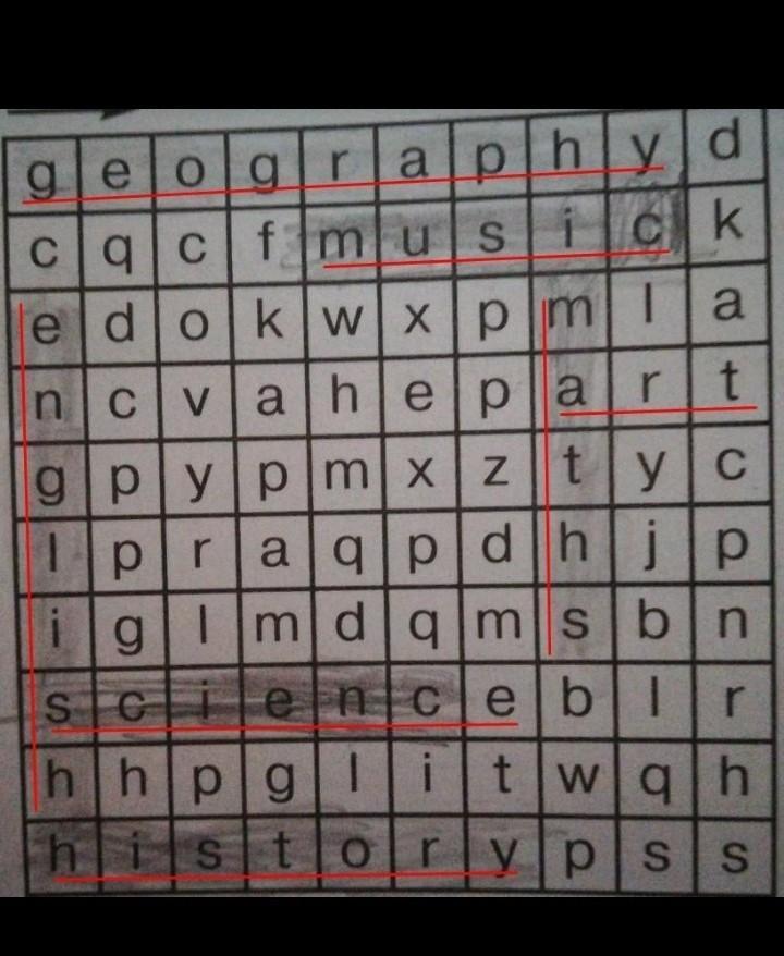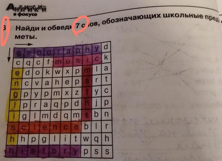 6. Найди и обреди 7 слов, обозначающих школьные предметы
