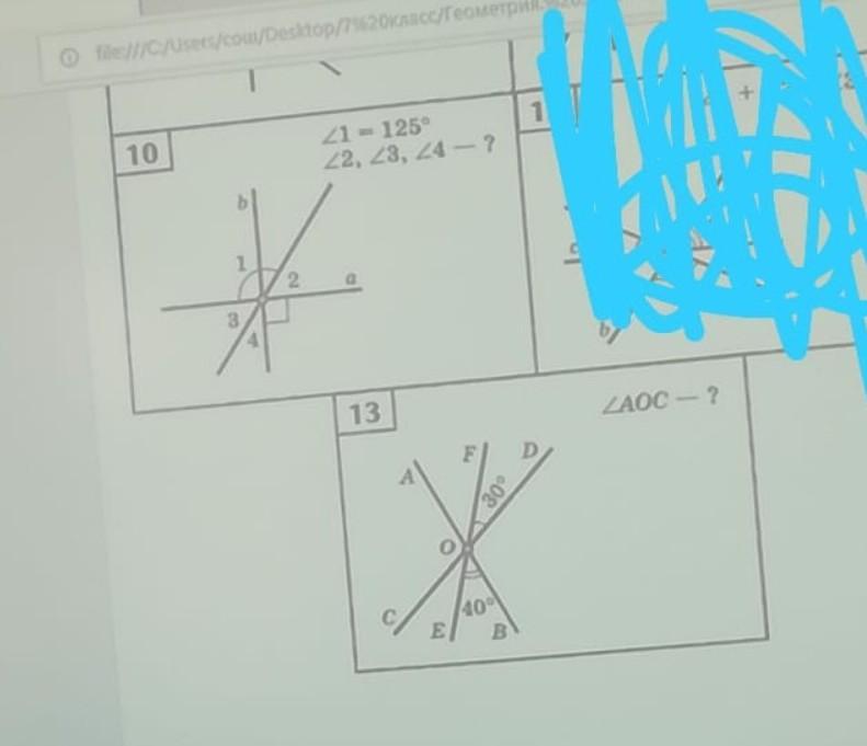13. угол АОС равен углу ВОD равен 180° минус (30° плюс 40°) равно 180° минус 70 °равен 110°