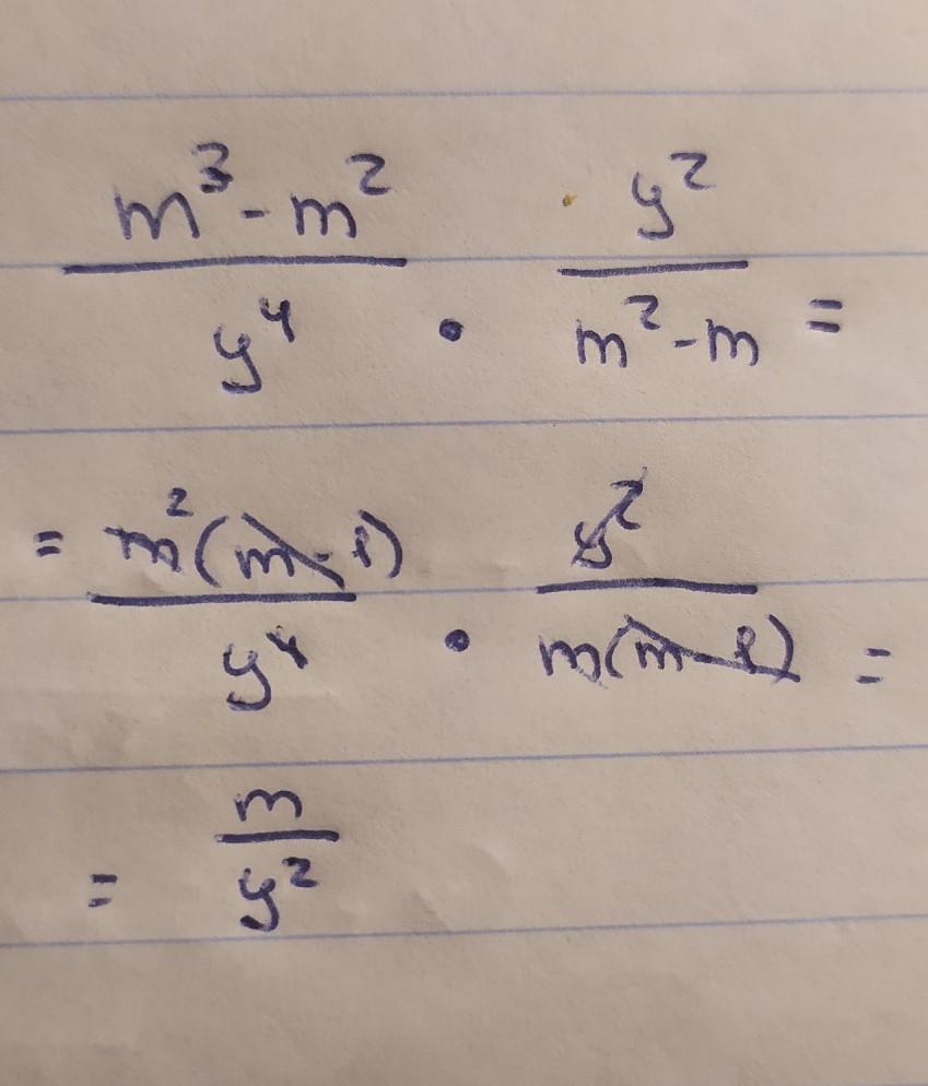 смотри было m^3-m^2. m^2 мы выносим за скобки, поэтому остаётся 1. Также и в другом случае, только там выносим просто m
