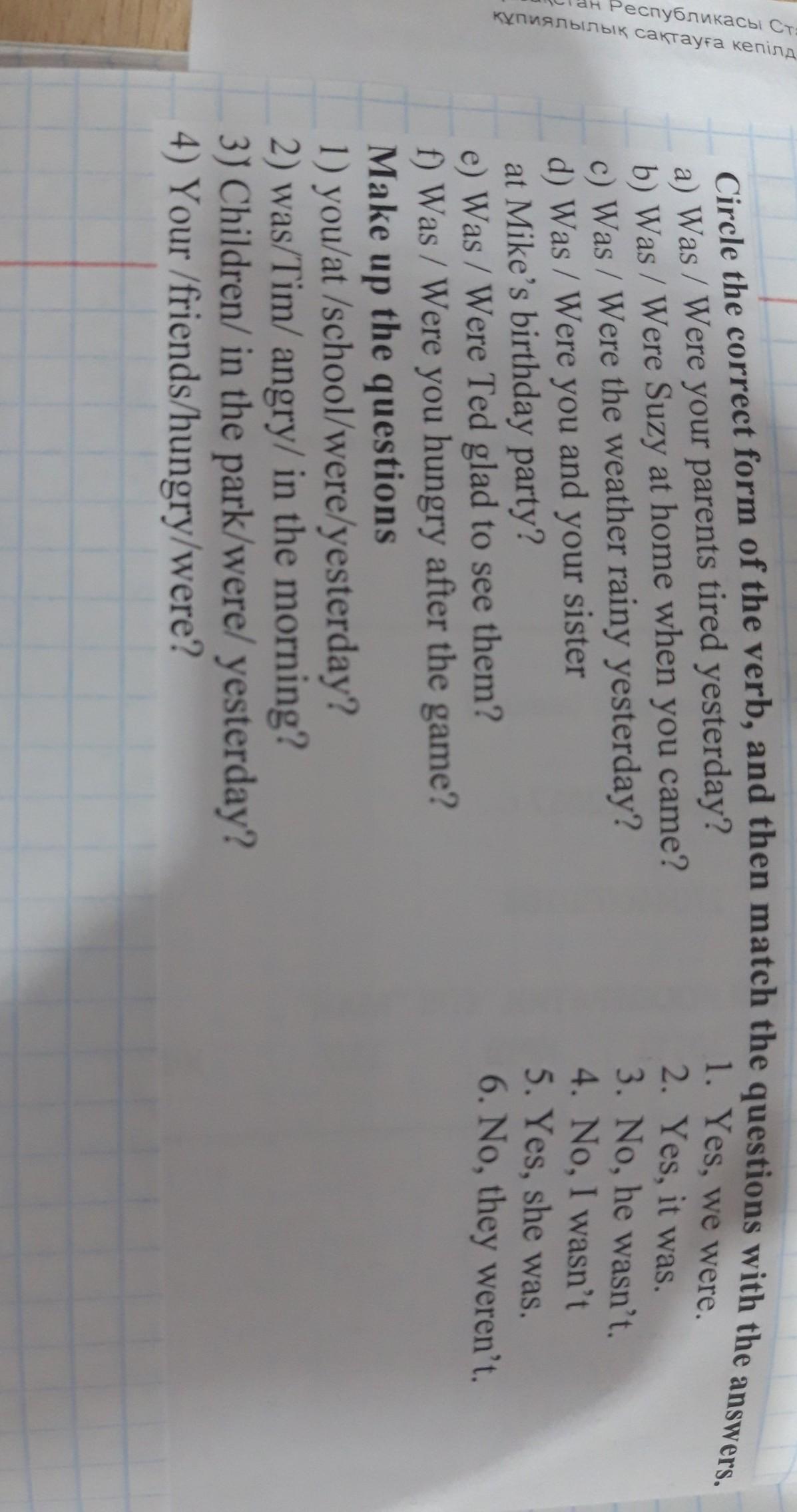 Ответ:a)Were 6; b) Was 5; c)Was 2; d) Were 1; e) Was 3; f) Were 4.