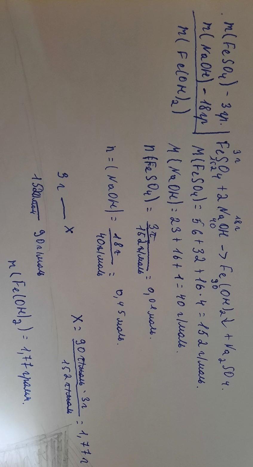 определить массу осадка которая выделяется при взаимодействии 3г сульфат железа,18 г гидрокстда натрия