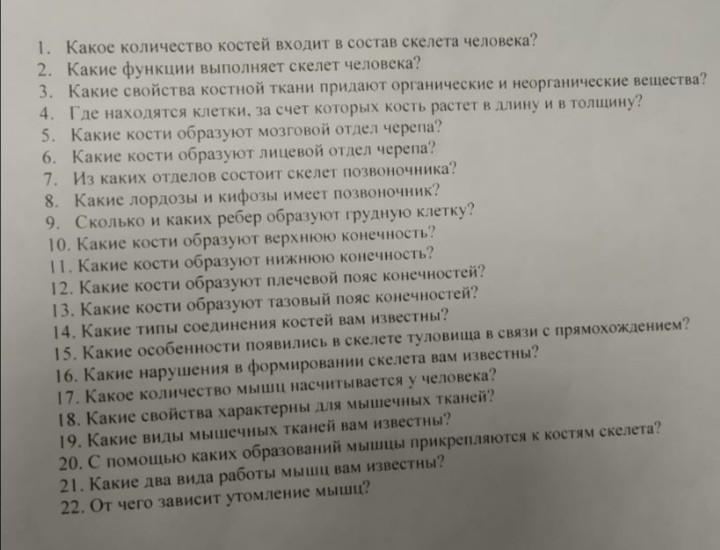 Ответ: 1.В составе скелета взрослого человека около 205—208 костей