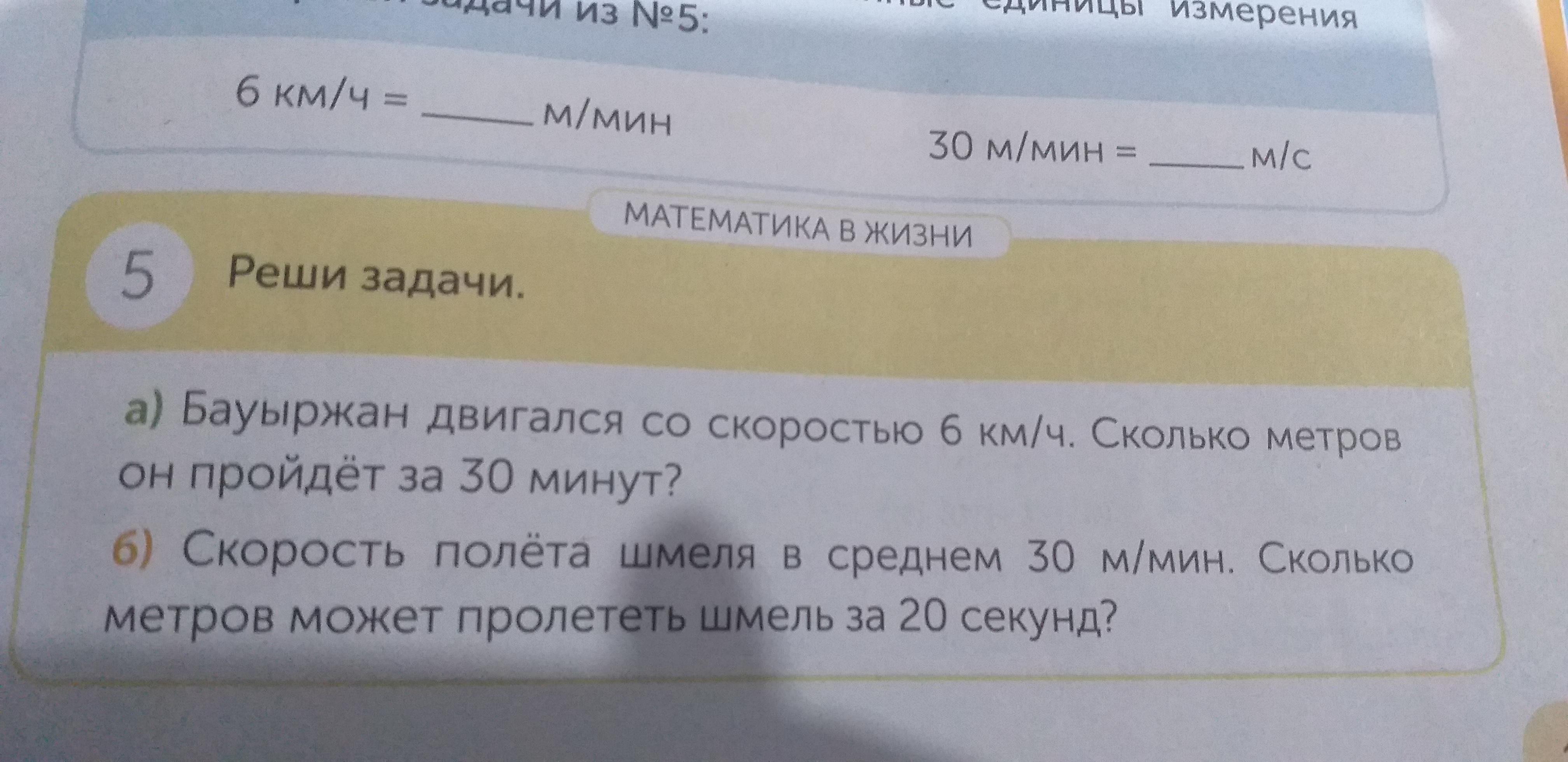 б) скорость полёта шмелся с среднем 30 м/мин. Сколько метров может пролететь шмель за 20 секунд?