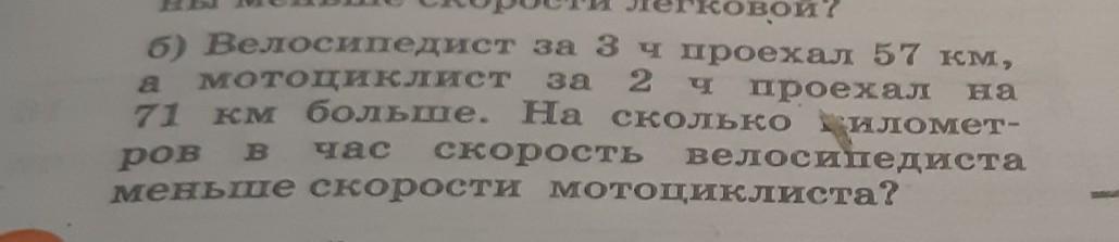 1) 57:3=19(км/ч) - скорость велосипедиста.