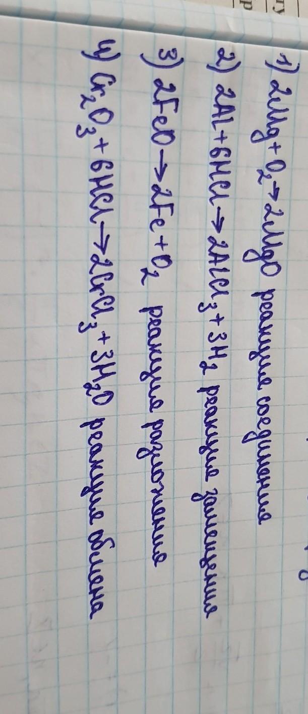4. Расставьте коэффициенты и определите типы химических реакций по уравнениям ре